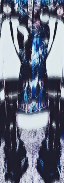 The 4D or 4-dimensional selfie persona poster gif contains animated logo semiotically magick symbols in white geometric formations of motion graphic effects persona’s world.